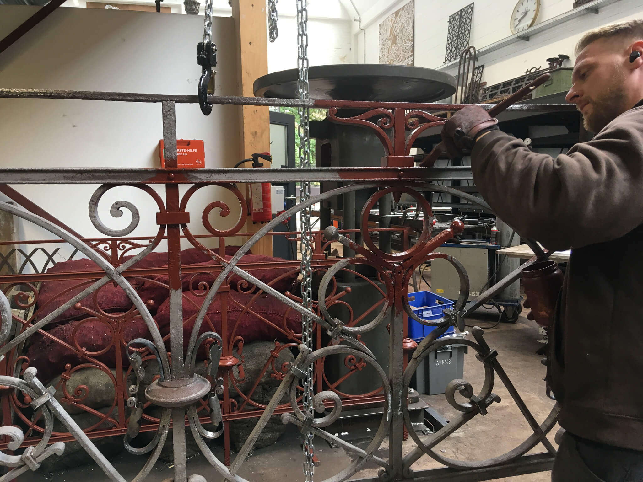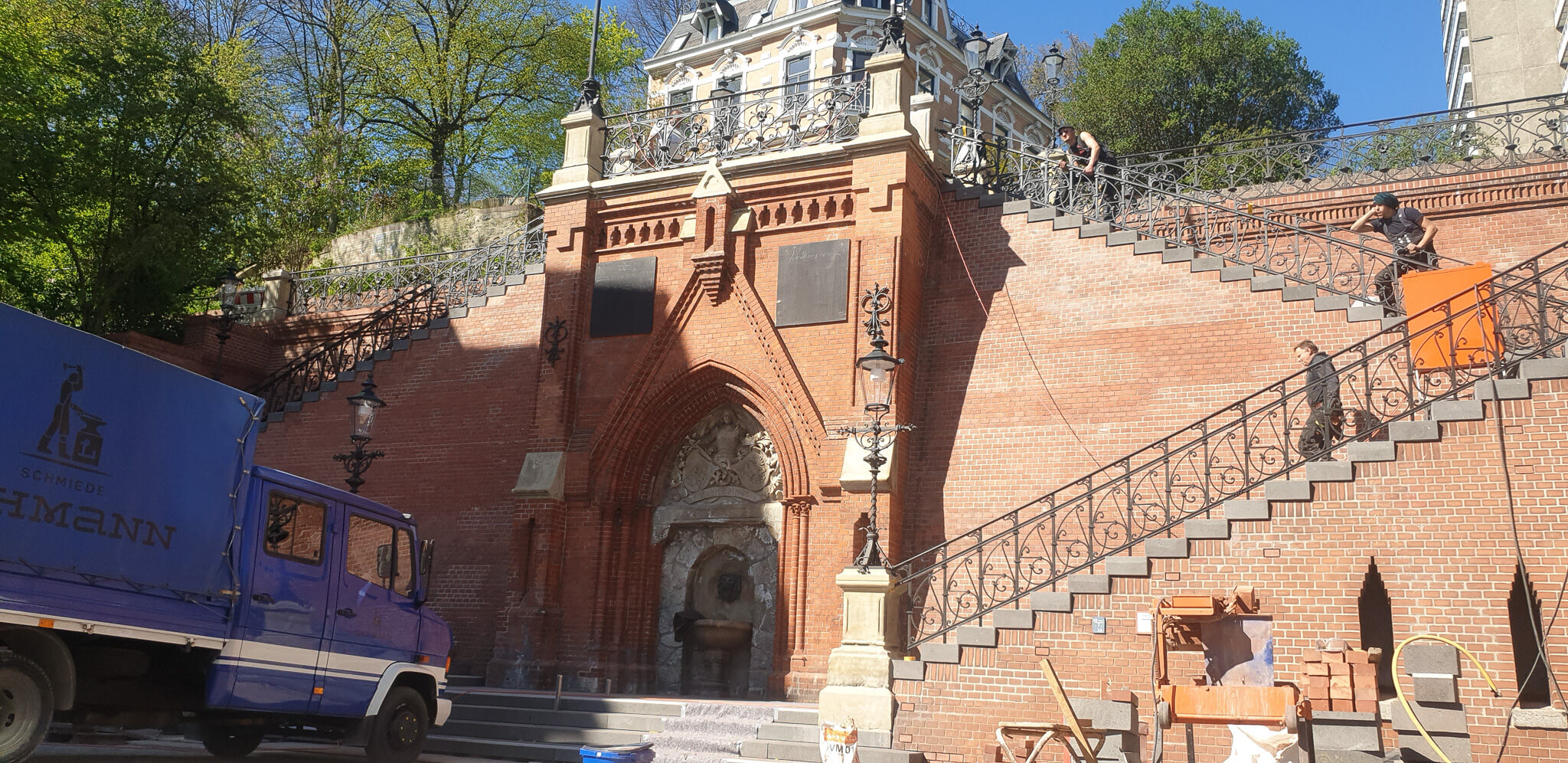 Die Arbeiten wurden von der Schmiede Lehmann in Hamburg unter der Leitung von Schmiedemeister Johannes Rienhoff ausgeführt. Als geprüfter Restaurator im Schmiedehandwerk verbindet er traditionelle Schmiedetechniken mit restauratorischem Fachwissen.
